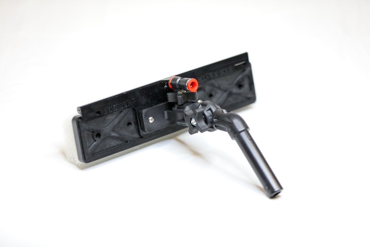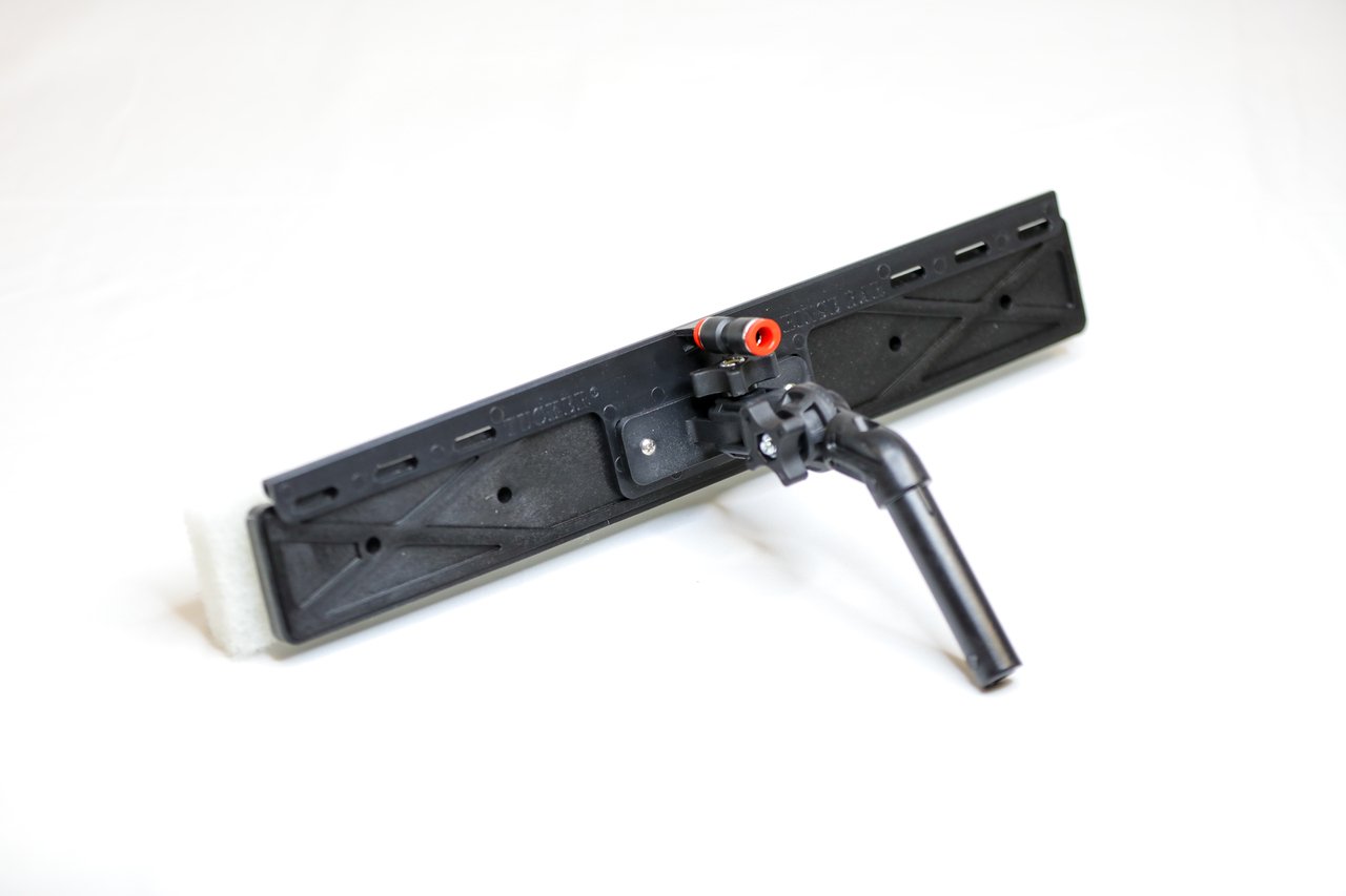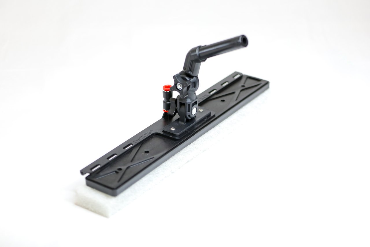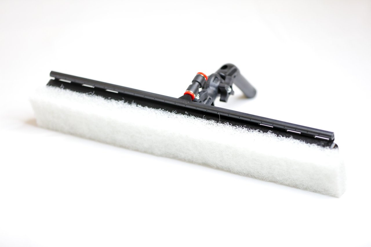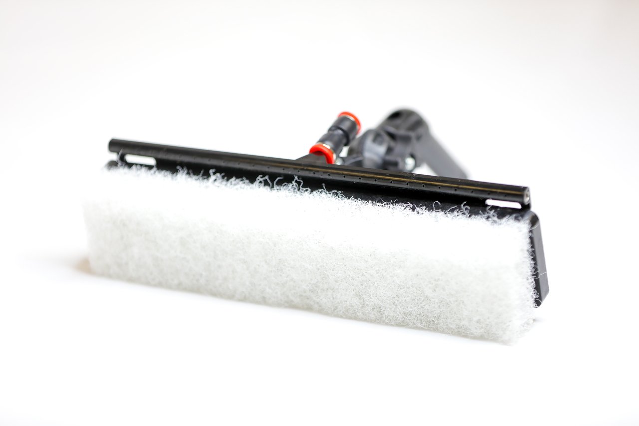The over the top rinse bar pours a cascade of water over the top of the brush allowing the water to fan over the glass and quickly rinse any debris from the cleaning area. This allows a fast rinse with minimal effort, saving your body from premature fatigue.