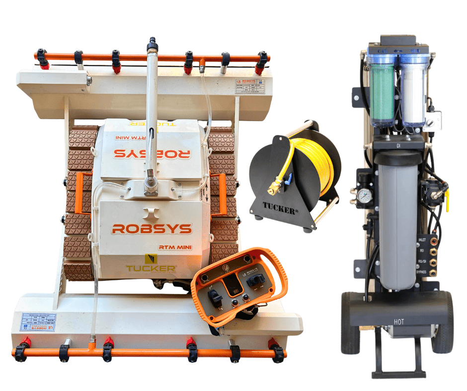 This powerhouse pairing includes the Tucker® RTM MINI Solar Cleaning Robot, developed in collaboration with Robsys—the global leader in robotic solar cleaning—and our highest-output purification system ever: the Tucker® Max Output RO/DI System.