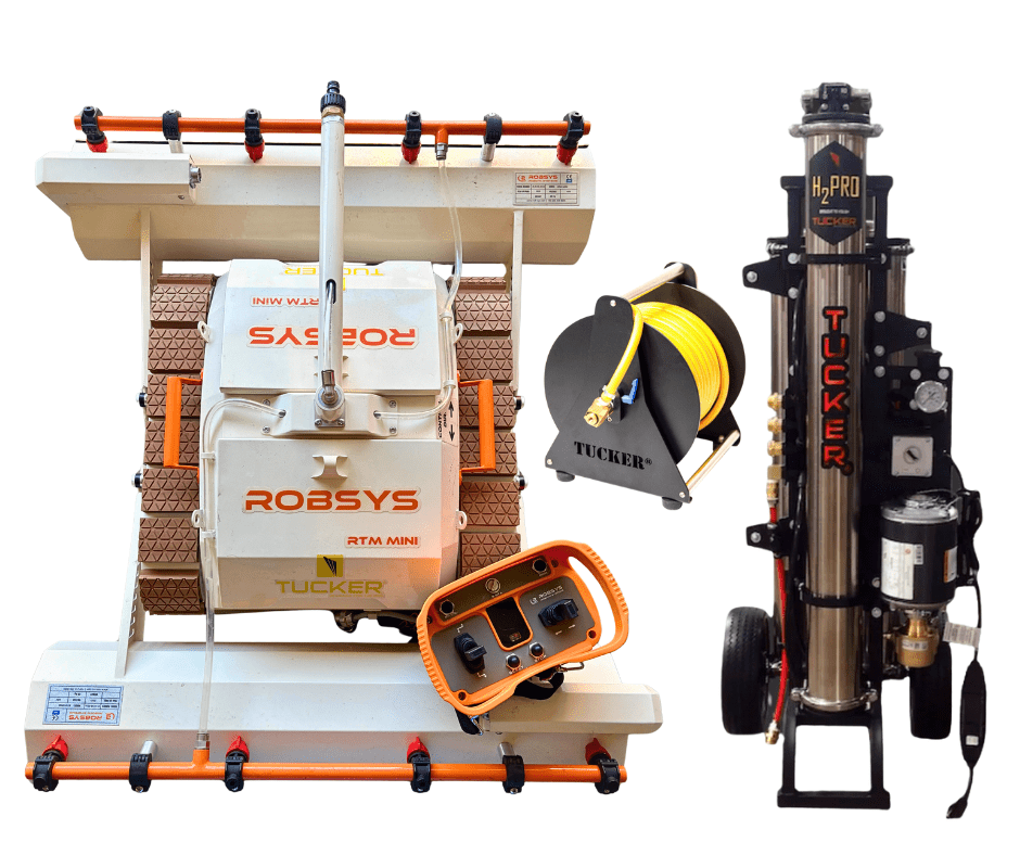 Tucker® is proud to offer a powerful new combination for solar professionals who demand performance at scale. The RTM MINI Robotic Cleaner paired with our trusted, H2Pro purification system.